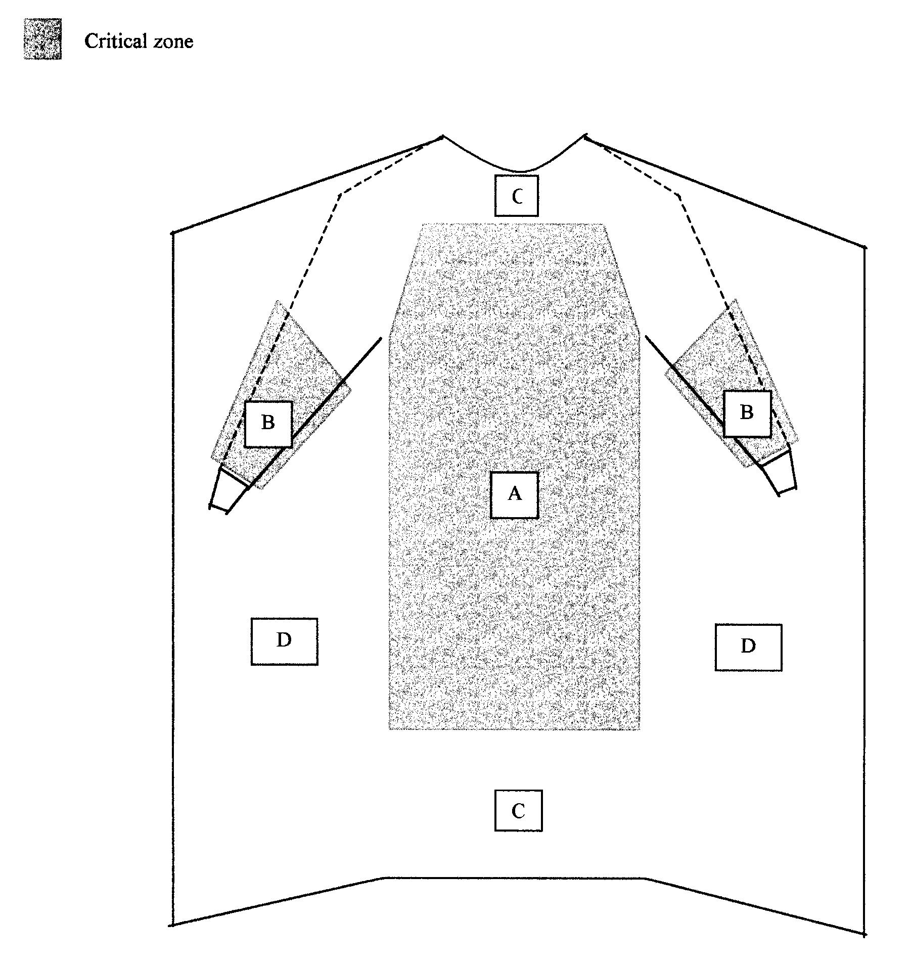 Critical Zones of a gown intended for surgical applications.